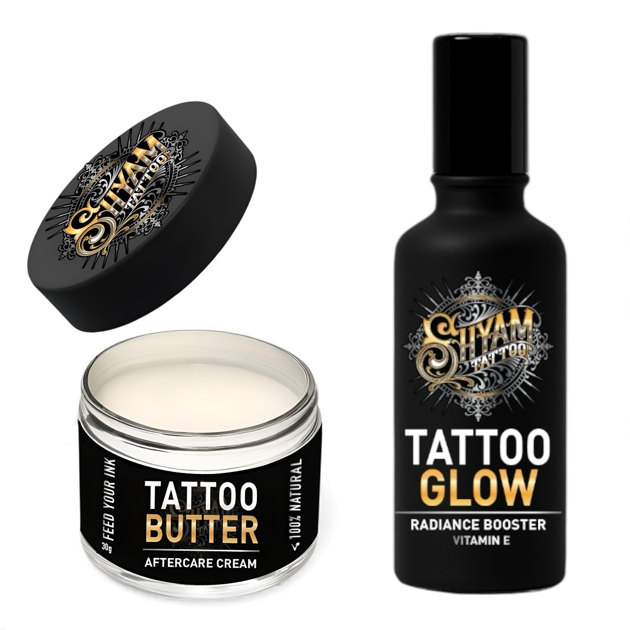 Shyam Tattoo Glow is a carefully crafted blend of rich, all-natural oils designed to enhance the brightness and vibrancy of your tattoos. Its lightweight, nourishing formula brings out the rich colours and fine details in your ink, giving it a radiant, glowing effect while keeping your skin hydrated and healthy. Ideal for daily use, this unique blend not only maintains the longevity of your tattoos but also leaves your skin with a subtle, healthy tan glow.